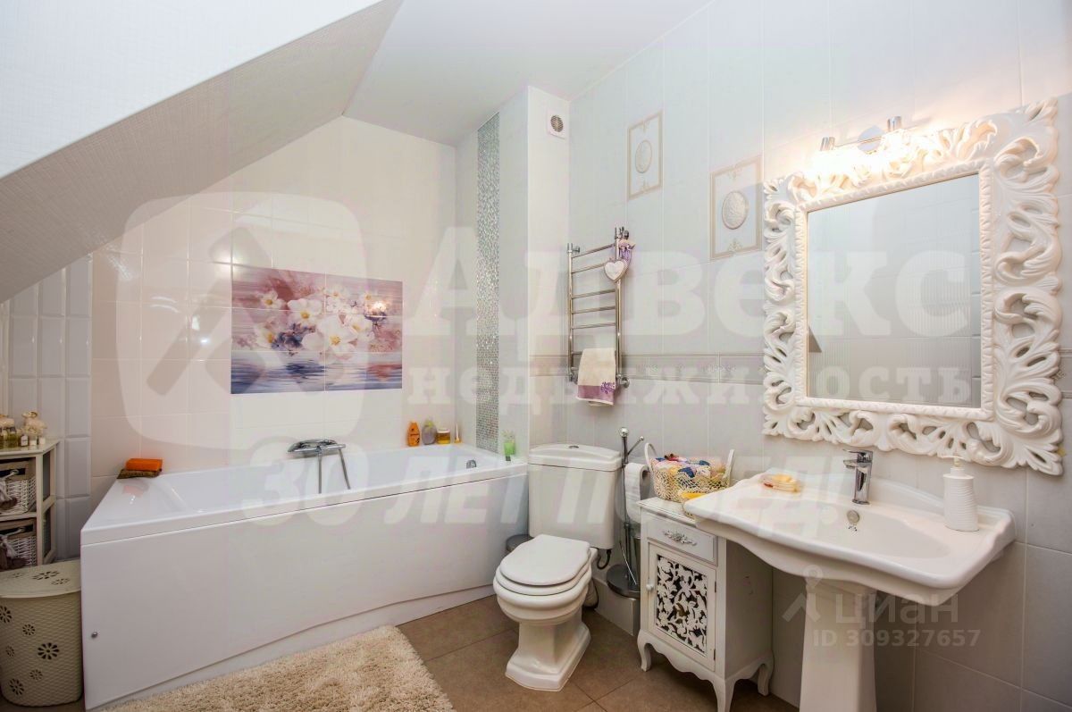 Продается двухэтажный кирпичный коттедж с полноценным цокольным этажом на земельном участке 21 соток в городе Тюмени - район Мыс. Построен дом по немецкому проекту. Высота потолков 3.50 метра. На первом этаже столовая 75 метров с отдельным выходом, гостевая комната , большой гостевой санузел с ванной. Две спальни, каждая со своим санузлом. Помещение под кабинет. На втором этаже огромный холл свободной планировки с возможностью организовать еще две комнаты. Цокольный этаж со своей кухней, используется для приготовления пищи, постирочная комната, два холодный помещения для хранения. Сауна с бассейном и душевой кабиной. Весь ремонт и обустройство дома выполнено с особой любовью и уютом. Во всех комнатах свой индивидуальный кондиционер. Ремонт произведен в оригинальном стиле. Лестница из дуба по индивидуальному заказу. В столовой дубовый паркет. Где выложен керамогранит - теплый пол. Межкомнатные двери из массива дуба. При продаже остается все: итальянская мебель из красного дерева. Мягкая мебель из белой кожи. Спальные гарнитуры. Бытовая техника. На участке имеется крытый бассейн со своей системой очистки. Баня в русском стиле с комнатой отдыха и террасой. Гараж капитальный, из красного кирпича на две машины. Капитальный дом в двух уровнях - можно использовать для обслуживающего персонала или как гостевой дом. Участок оформлен с любовью - имеется розарий, ландшафтный дизайн из вечнозеленый хвойных пород, плодоносящий сад, кустарниковая зона. Все дорожки выложены из плитняка. Забор, по периметру участка, из красного кирпича. Полноценные въезды на участок с двух противоположных сторон. Имеется так же прилегающая территория в районе 12 соток, также заботливо оформленная и асфальтированная. Особое предложение - такой проект дома подойдет под любое коммерческое использование - гостиницу, офис....