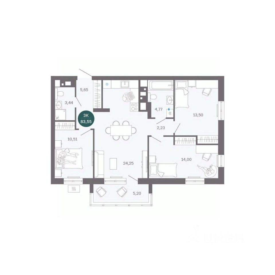 Общая площадь83,55 м2