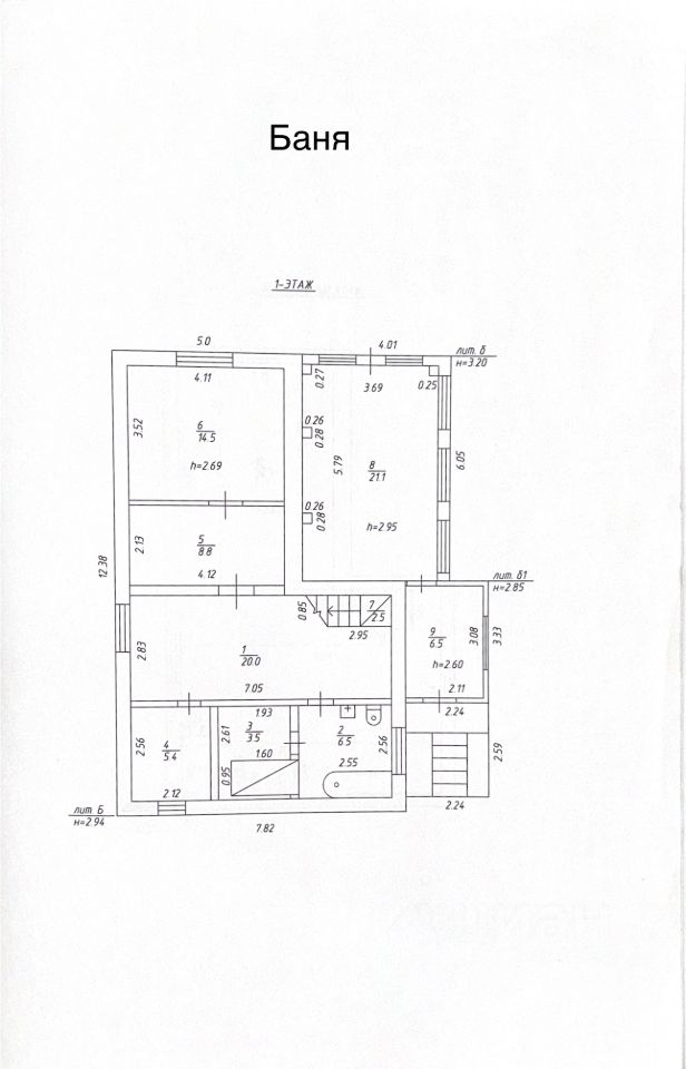 Цокольный этаж — 120 квадратных метров, материал — ж/б плиты.