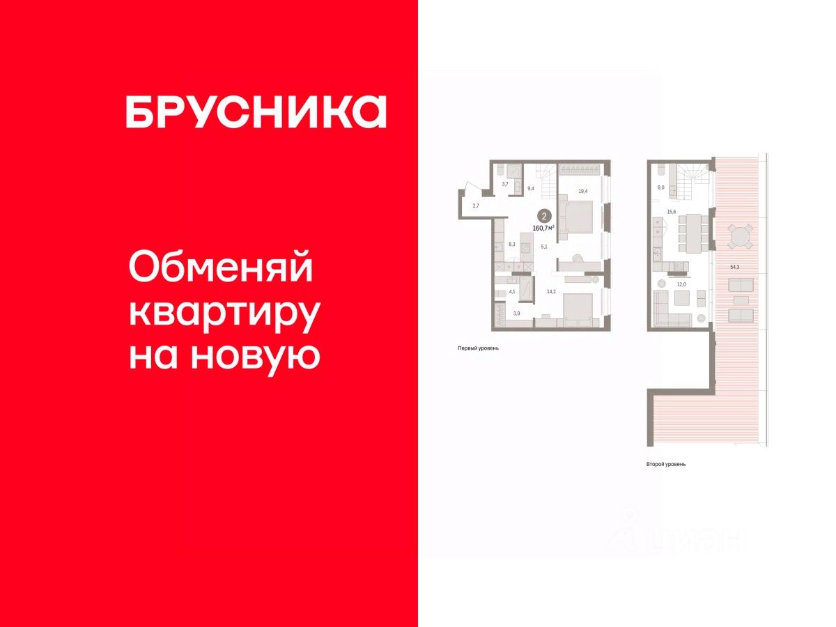 Двухуровневая квартира с кухней-гостиной и двумя спальнями в кварталах ''На Минской''. Особенности планировки: второй санузел, гардеробная, двухуровневая, мастер-спальня, окно в санузле, панорамное остекление, предчистовая отделка, терраса на крыше. квартиры в нашей базе: МНС01-Ж2.7.4.