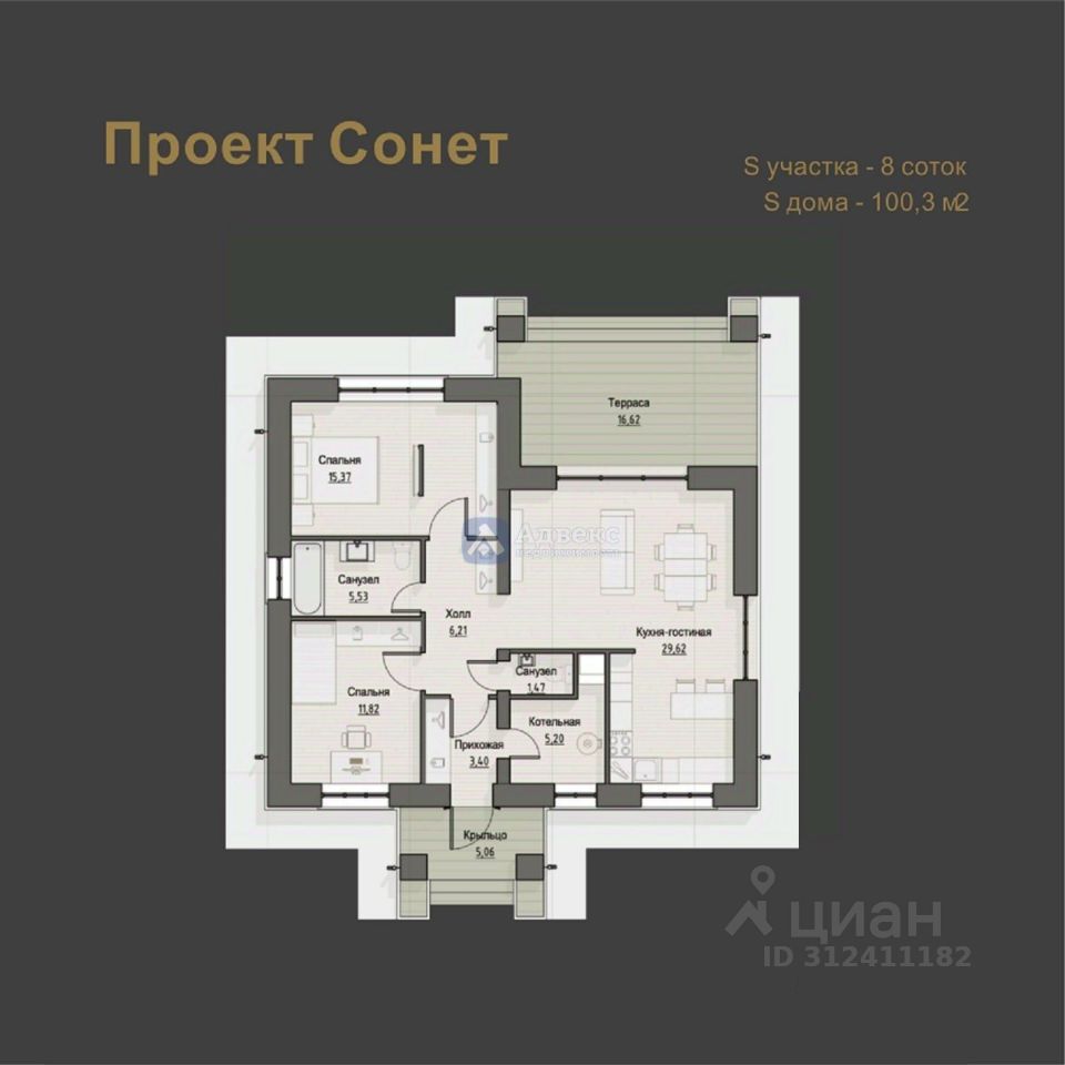 Продается готовый благоустроенный дом Формата 2+.Планировка: 2 спальни и кухня-гостиная с выходом на террасу, 2 санузла. Фундамент свайно-ростверковый, стены керамзитоблок 290 облицованы керамическим кирпичем Braer, кровля-мягкая черепица.