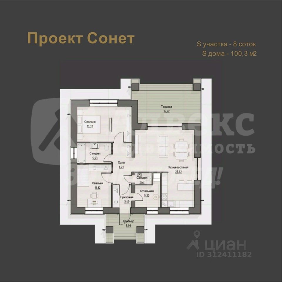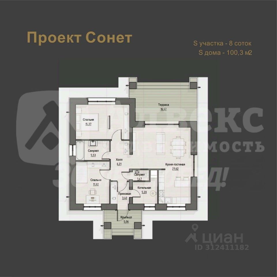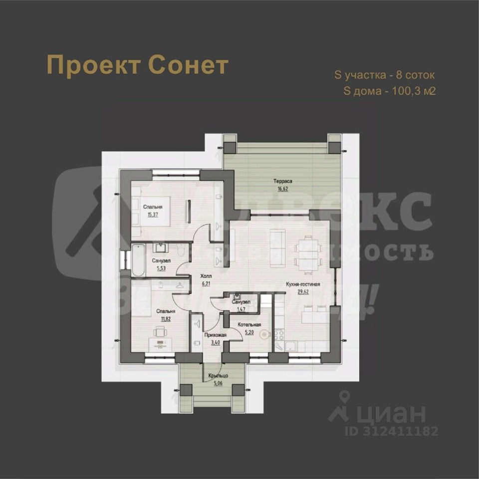Продается готовый благоустроенный дом Формата 2+.Планировка: 2 спальни и кухня-гостиная с выходом на террасу, 2 санузла. Фундамент свайно-ростверковый, стены керамзитоблок 290 облицованы керамическим кирпичем Braer, кровля-мягкая черепица.