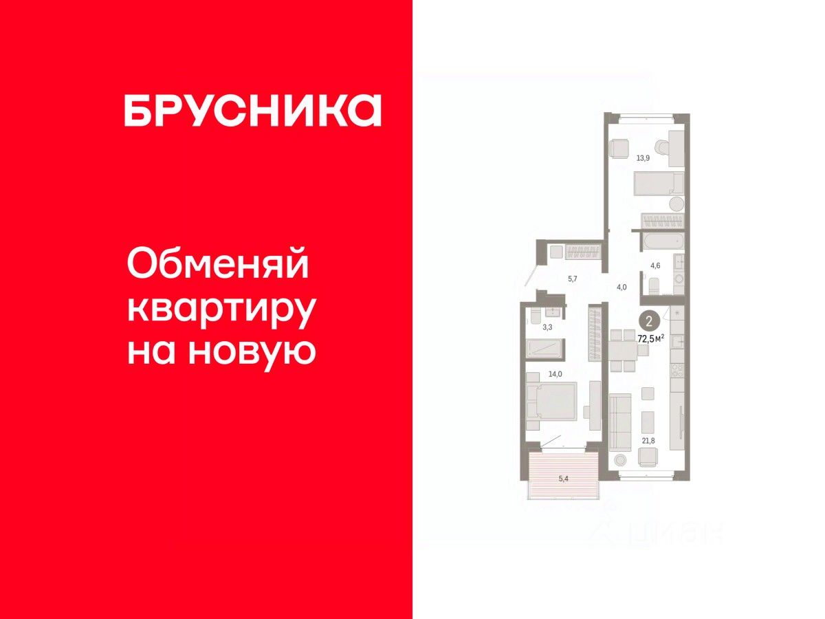 Продается двухкомнатная квартира от застройщика с предчистовой отделкой в Кварталы ''На Минской'' на 4 этаже. Общая площадь: 72.5 кв.м., жилая: 27.9 кв.м., площадь просторной кухни-гостиной: 21.8 кв.м. Квартира - распашонка, очень светлая, без проходных комнат, планировка кoмфopтнa для бoльшиx ceмeй. В квартире одна лоджия, два совмещенных санузла. Высота потолков 2.7 м.