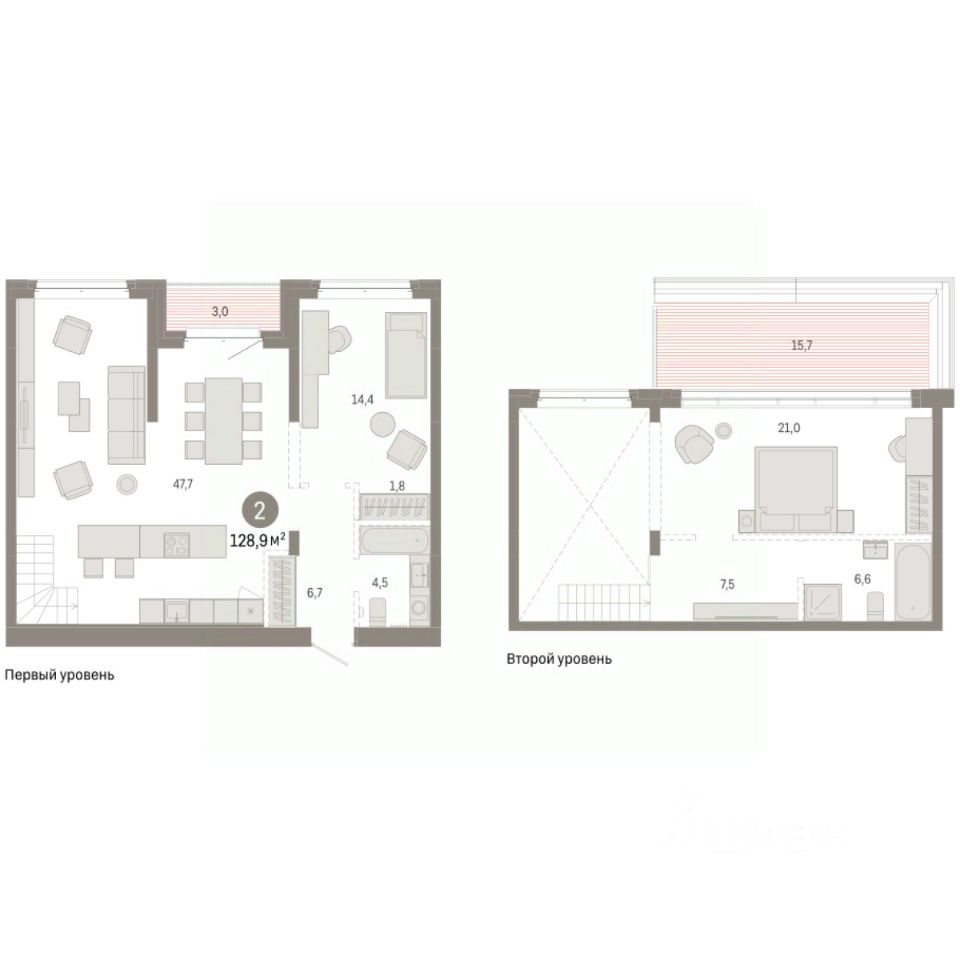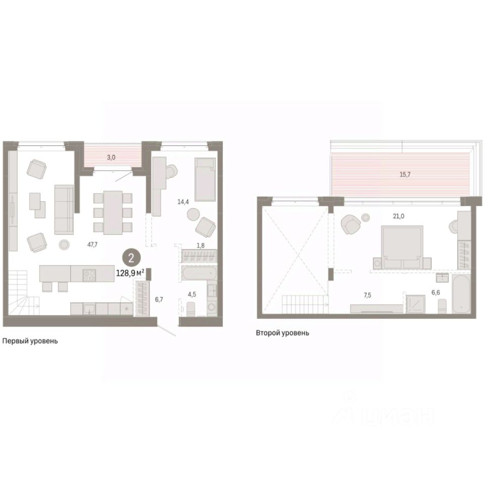 Продаётся с паркингом. Двухуровневая квартира с кухней-гостиной и двумя спальнями в кварталах ''На Минской''. Особенности планировки: двухуровневая, предчистовая отделка, разнесённые спальни, терраса на крыше. квартиры в нашей базе: МНС02-Ж10.7.2.