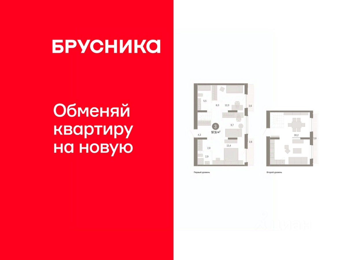 Квартира с кухней-гостиной и тремя спальнями в Октябрьском на Туре. Особенности планировки: балкон, мастер-спальня, панорамное остекление, предчистовая отделка, терраса на крыше. квартиры в нашей базе: ОКТ-08-2-2.8.4.