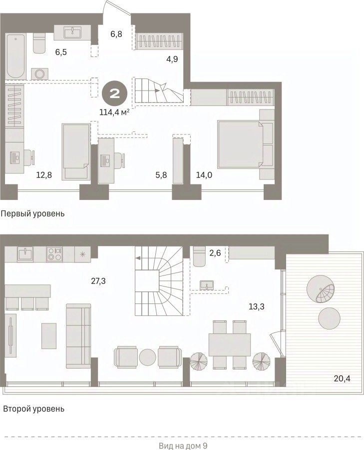Квартира с кухней-гостиной и двумя спальнями в жилом районе ''Речной порт''. Особенности планировки: свободная планировка, терраса на крыше. квартиры в нашей базе: РП-08-5-5.8.3.