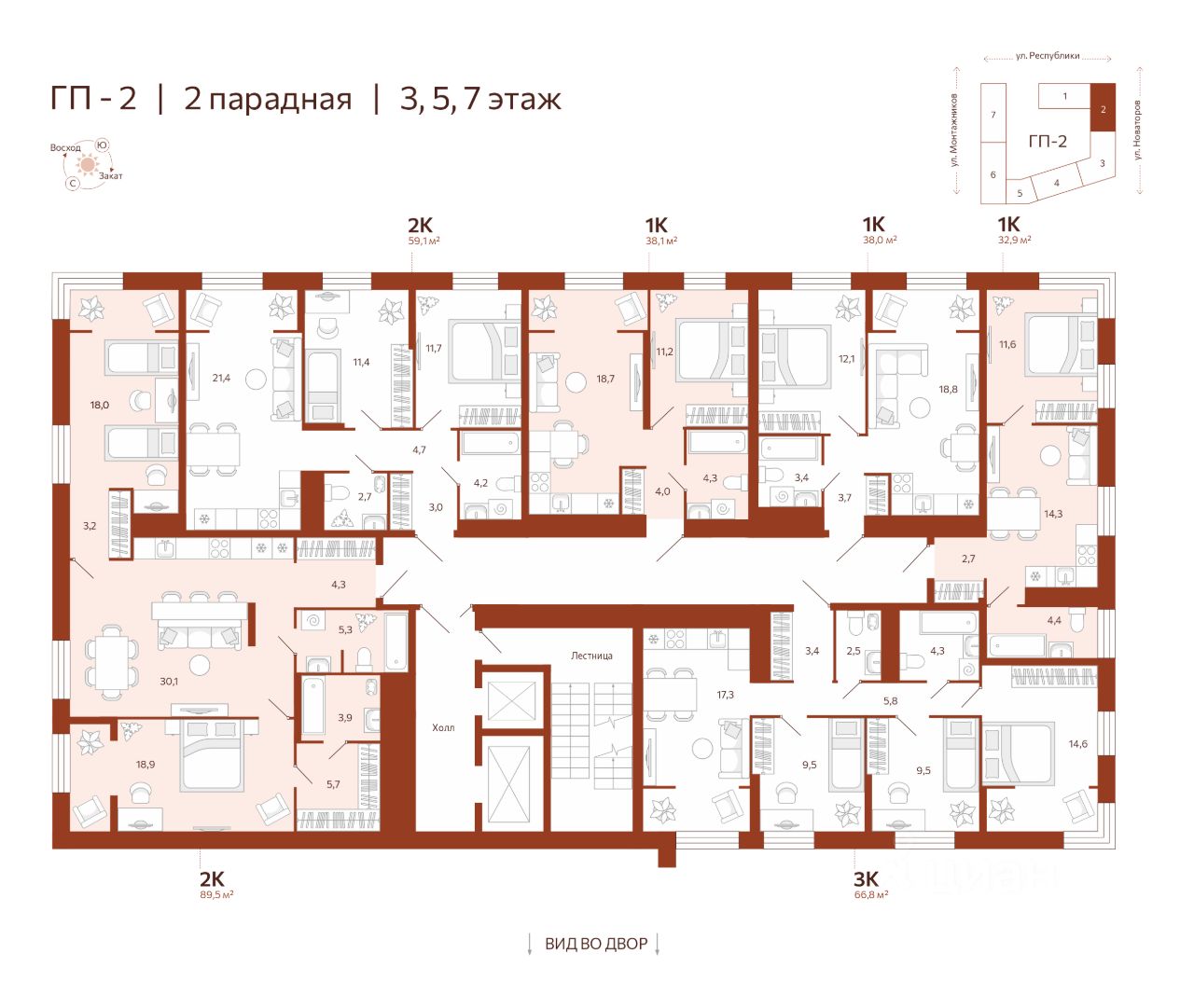Продаётся 2-комнатная квартира в строящемся доме (ГП-2 (Новаторов, 30)), срок сдачи: IV-кв. 2025, общей площадью 89.5 кв.м., на 7 этаже. Новый жилой комплекс ''Новатор'' от застройщика ГК ''СБК'' расположен по адресу: г. Тюмень по ул. Новаторов.