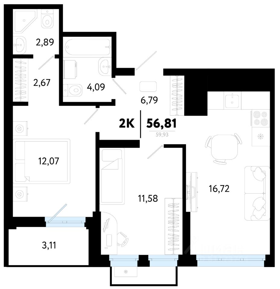продам 2-к, Василия Малкова, 327 150 000 ₽