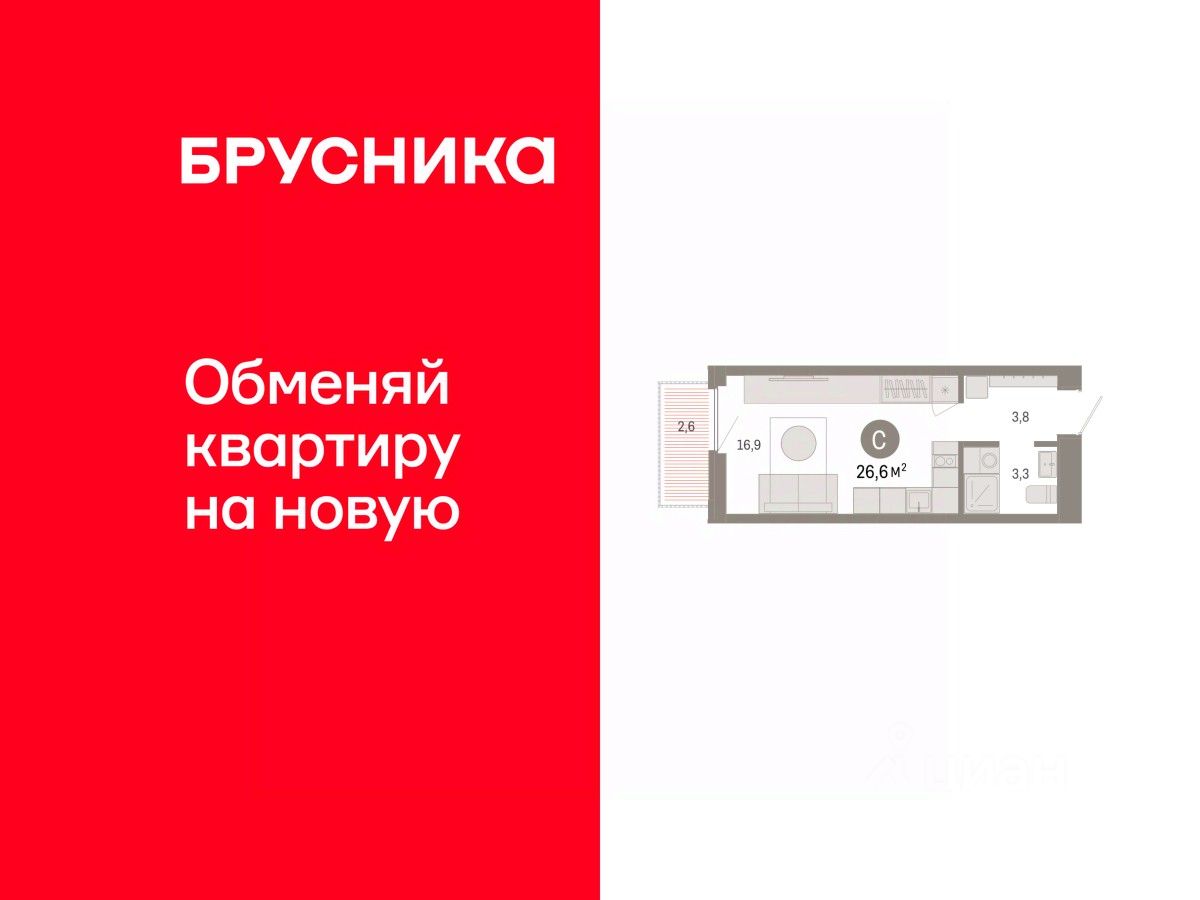 Студия в жилом районе ''Зарека''. Особенности планировки: балкон, предчистовая отделка. квартиры в нашей базе: ЗРК05.2-Ж1.14.5.