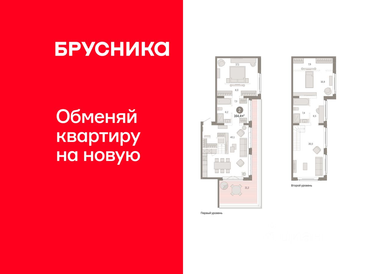 Двухуровневая квартира с кухней-гостиной и двумя спальнями в кварталах ''На Минской''. Особенности планировки: двухуровневая, окно в коридоре, предчистовая отделка, разнесённые спальни, терраса на крыше. квартиры в нашей базе: МНС02-Ж5.11.1.