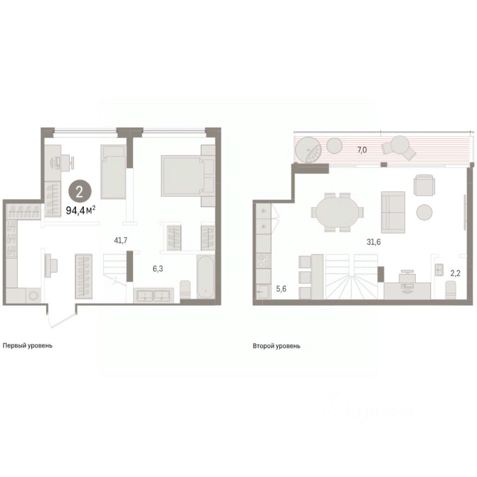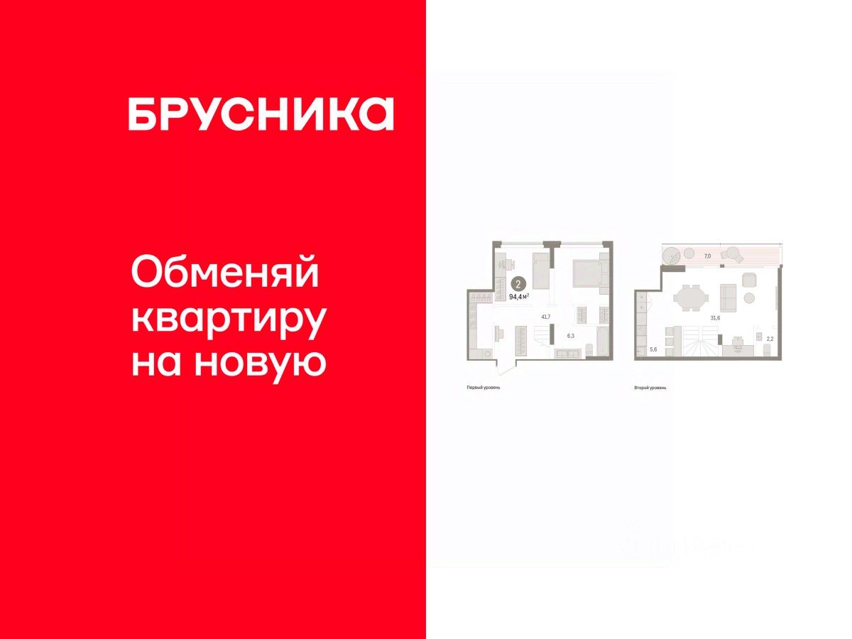 Квартира с кухней-гостиной и двумя спальнями в жилом районе ''Речной порт''. Особенности планировки: двухуровневая, свободная планировка, терраса на крыше. квартиры в нашей базе: РП-09--1-1.5.1.