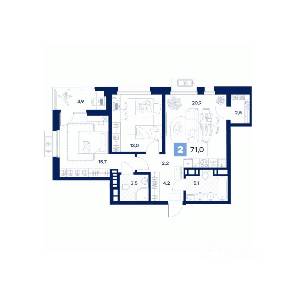 Продается 2- комнатная квартира площадью 71 кв.м на 3 этаже в клубном доме с сервисами премиального уровня от девелопера Творчество. Дом Нойфертажилой проект, расположенный рядом с торгово-развлекательным центром ''Кристалл'' в Южном микрорайоне Тюмени. Строительство начато в 2023 году. В марте 2025 года Дом Нойферта стал первым жилым комплексом в Тюмени, получившим сертификацию Urban Grade. Проект успешно прошел независимую оценку качества новостроек и получил Серебряный уровень, что требует минимум 70 % соответствия основным критериям и не менее 25 % по дополнительным параметрам. Клубный формат доступ к инфраструктуре только для резидентов: -Фитнес-зал -Коворкинг на первом этаже -Умный паркинг с автомойкой и пунктом подкачки колес Оживленный район с удобной логистикой: -5 минут до центра Тюмени на авто -7 минут пешком до ТРЦ ''Кристалл'' -2 минуты до гимназии 83 и детского сада 78 -Более 30 маршрутов общественного транспорта Тихий и приватный: -Удален от шумных трасс -Отделен зелеными островками от существующей застройки -Озеленение по принципу ''архипелага'' с островками уютные зеленые зоны Безопасность на первом месте: -Контроль доступа по Face ID -Огороженная территория с видеонаблюдением -Охранный пункт Продуманное благоустройство: -Собственный сквер 1000 м² -6 приватных террас для отдыха -Зоны для спорта, йоги, воркаута -Площадка для выгула собак -Беседки и игровые зоны Эксклюзивные квартиры: -Видовые хайфлеты с террасами и вторым светом -Общественные террасы на кровле -Возможность ремонта под ключ в трех стилях Дом Нойфертаэто не просто жилье, а закрытый клуб для тех, кто ценит безопасность, приватность и высокий уровень жизни. Удачное расположение, продуманная инфраструктура и внимание к деталям делают его одним из самых престижных проектов в Тюмени.