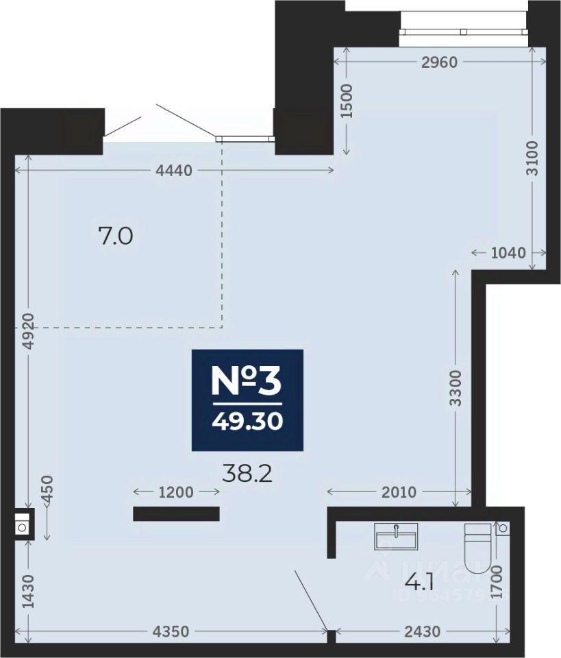 Помещение свободного назначения на 1 этаже, общая площадь 49.3 кв.м., без отделки. Стоимость помещения 11,577,000 руб., цена за кв.м 234,827 руб.