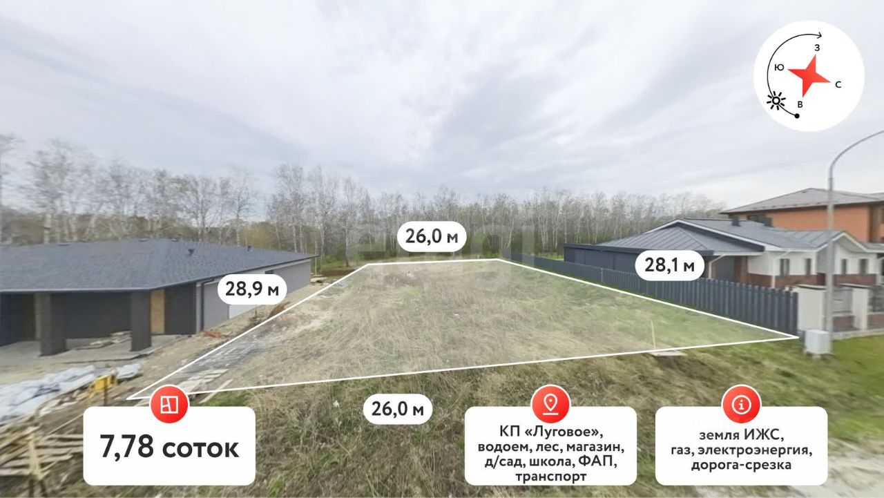 Место просто великолепно — окруженное природой, оно идеально подходит для строительства дома вашей мечты. Отличные подъездные пути обеспечивают легкий доступ к основным инфраструктурным объектам. В селе Луговое есть все необходимое для комфортной жизни: магазины, детские сады и школы, что делает этот участок идеальным выбором для семей с детьми.