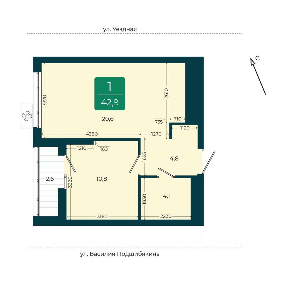 продам 1-к, Андрея Бушуева, 1 корп. 17 850 000 ₽