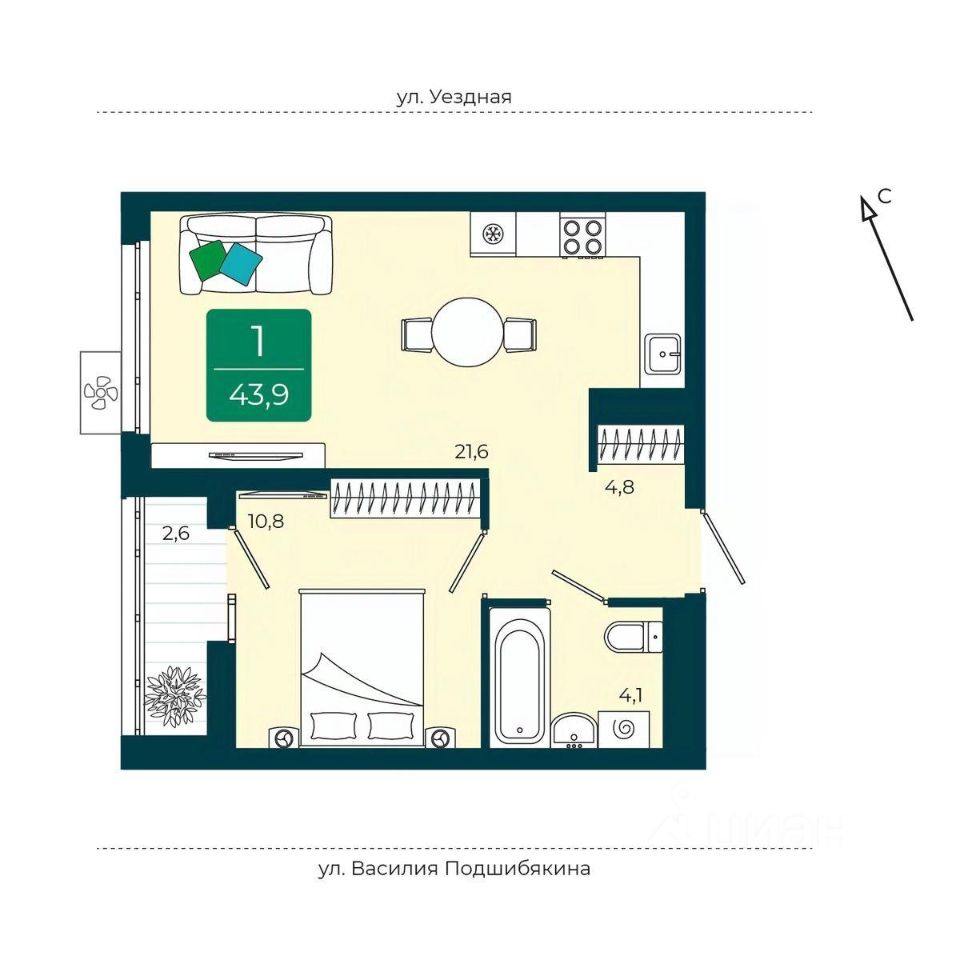 продам 1-к, Андрея Бушуева, 1 корп. 17 950 000 ₽