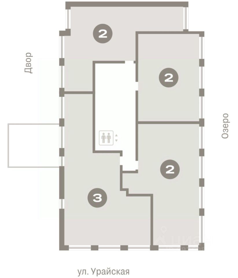 Квартира с кухней-гостиной и двумя спальнями в Доме у озера. Особенности планировки: балкон, предчистовая отделка, разнесённые спальни. квартиры в нашей базе: ДМУ-02-5-5.5.1.