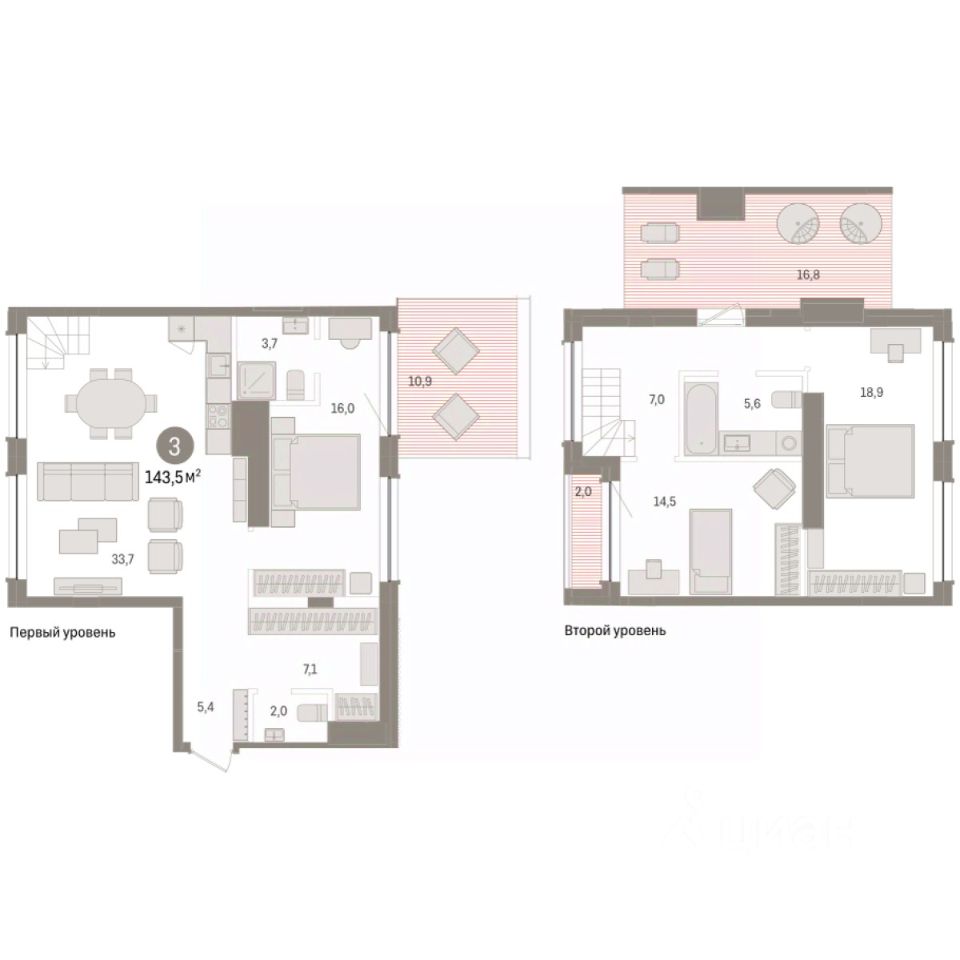 Двухуровневая квартира с кухней-гостиной и тремя спальнями в Доме у озера. Особенности планировки: двухуровневая, окно в коридоре, предчистовая отделка, разнесённые спальни, терраса на крыше. квартиры в нашей базе: ДМУ-02-7-7.8.3.
