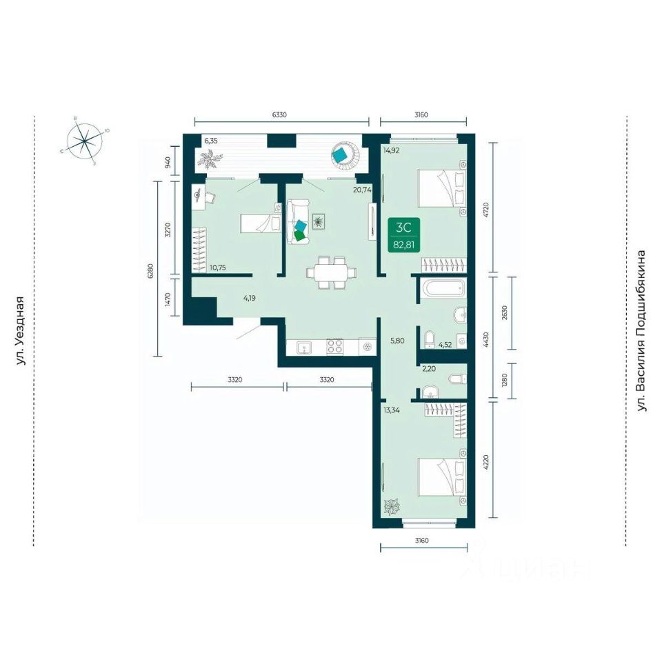 продам 3-к, Василия Подшибякина, 79 550 000 ₽