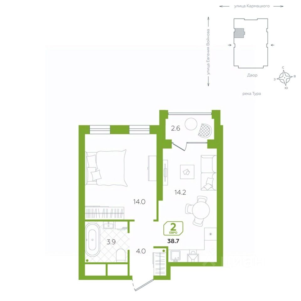 Современная евро-двухкомнатная квартира предлагает впечатляющее сочетание стиля и функциональности.