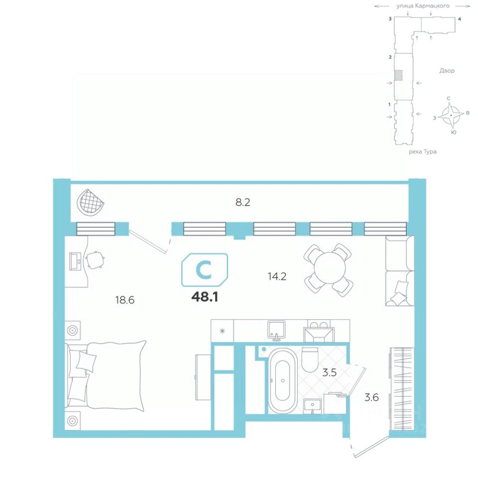 Уютная студия обладает правильной геометрией, что позволяет максимально эффективно использовать пространство.
