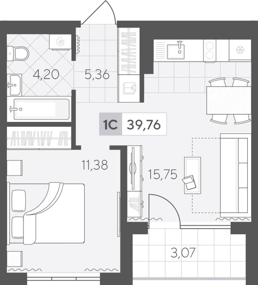 Однокомнатная квартира 39.77 кв.м на 2 этаже с планировкой, сочетающей комфорт и функциональность. Здесь легко создать атмосферу уюта и спокойствия, а кухня-гостиная позволит проводить много времени за совместными занятиями или принимать гостей.