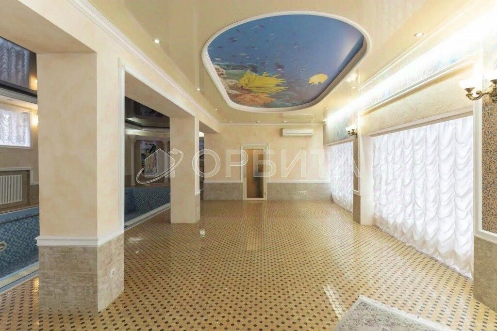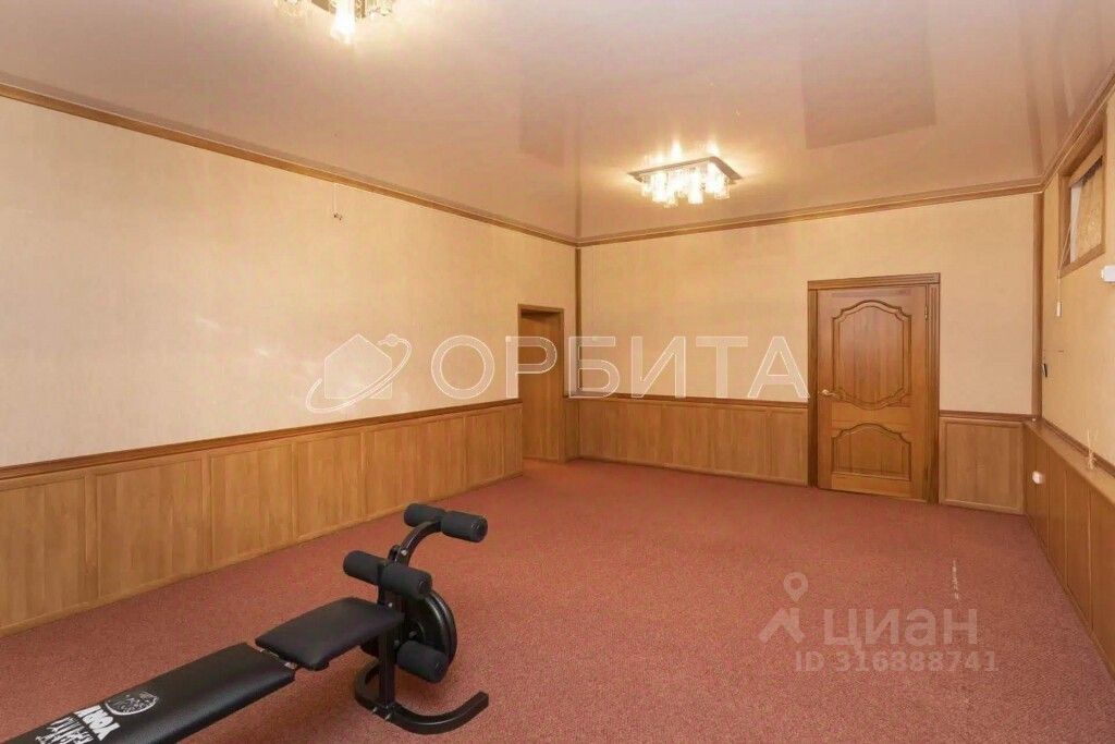 Цокольный этаж отведён под сауну, душ и санузел. Также здесь есть бильярдная и тренажёрный зал.