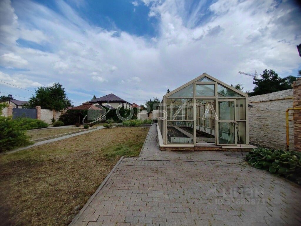 В дополнение к коттеджу на территории есть тёплый гараж на три автомобиля с подземным погребом, домик для охраны, хозяйственный блок и отапливаемая теплица из алюминиевого профиля площадью около 30 м² с подогреваемым грунтом.