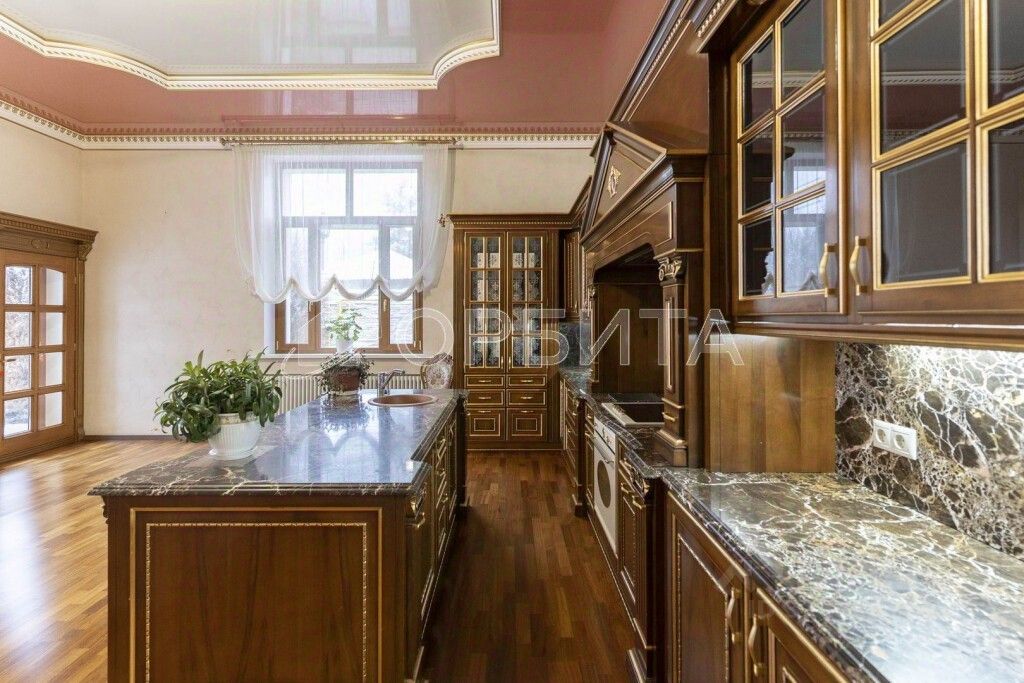 Коттедж выполнен в эксклюзивном стиле с использованием высококачественных материалов из Италии и Германии. Лестница и двери изготовлены из натурального дуба на заказ. Пол покрыт паркетом, а кухонный гарнитур также выполнен из Италии.