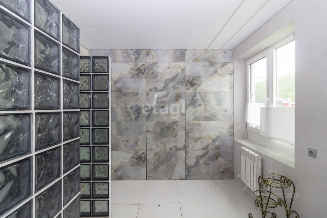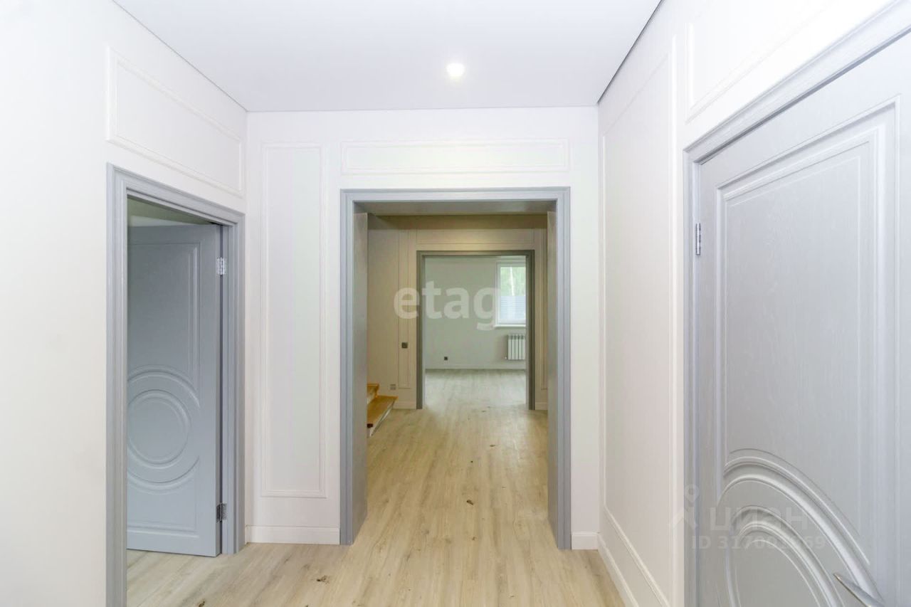 Дом строили для себя, состоит из 5-ти жилых комнат. Фундамент ЖБИ, стены — газобетон, кровля утепленная — гибкая черепица, цокольное перекрытие ЖБИ, деревянное межэтажное перекрытие. Ремонт по дизайн-проекту из качественных материалов. На участке есть недостроенный гараж и баня.