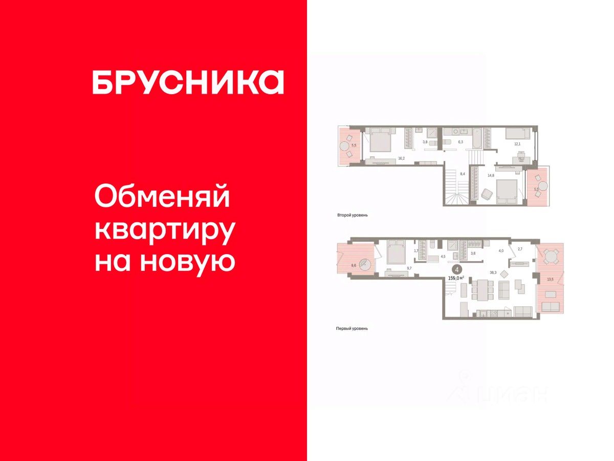 Продаётся с паркингом. Двухуровневая квартира с кухней-гостиной и четырьмя спальнями в Доме у озера. Особенности планировки: балкон, двухуровневая, окна на две стороны, отдельный вход, предчистовая отделка, разнесённые спальни. квартиры в нашей базе: ДМУ03-Ж6.1.4.
