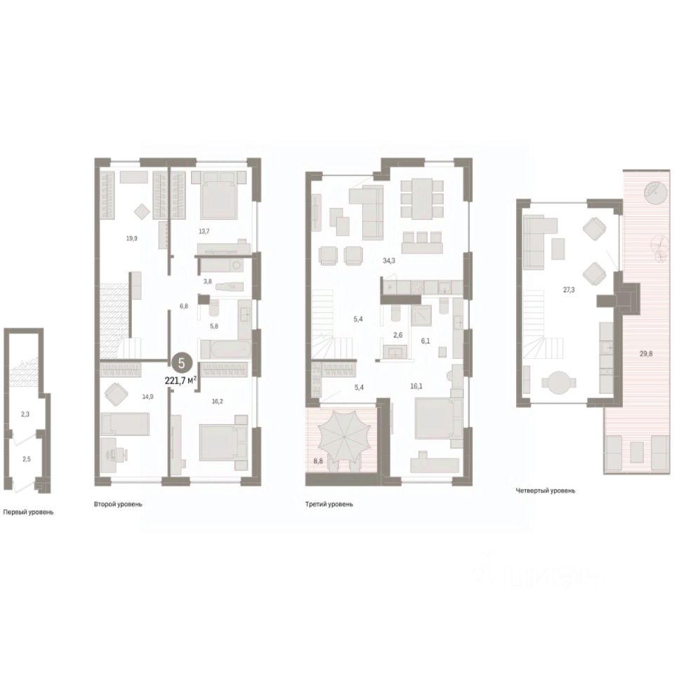 Продаётся с паркингом. Двухуровневая квартира с кухней-гостиной и четырьмя спальнями в Доме у озера. Особенности планировки: двухуровневая, окно в коридоре, окно в санузле, отдельный вход, предчистовая отделка, разнесённые спальни, стактхаус, терраса на крыше. квартиры в нашей базе: ДМУ03-Ж1.2.2.