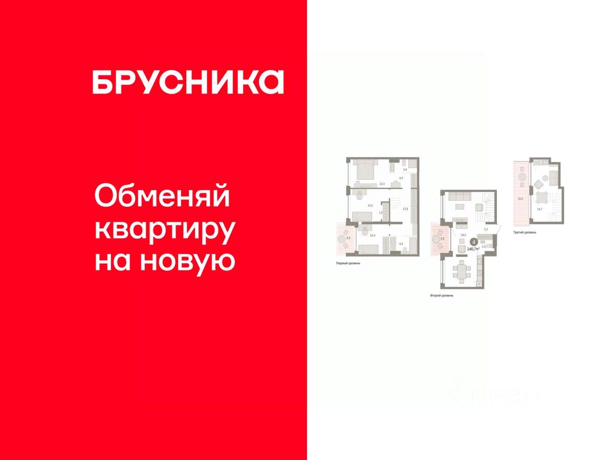 Просторная 4-комн. квартира с предчистовой отделкой в ЖК ''Дом у озера'' на 3 этаже. Общая площадь: 140.66 кв.м. Высота потолков 2.7 м.