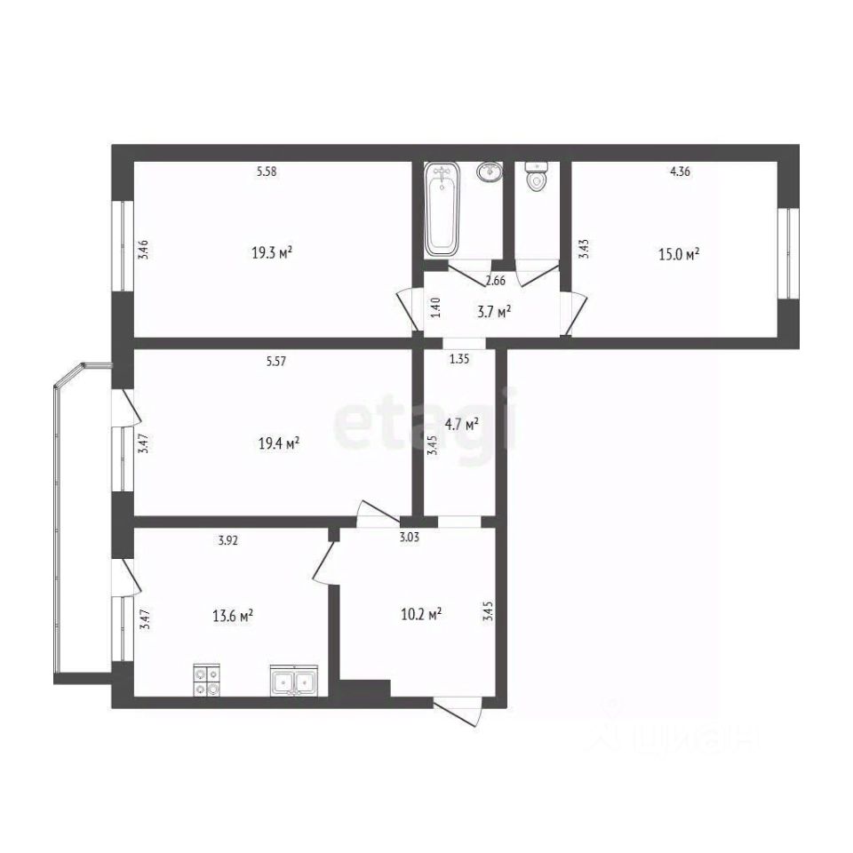 Квартира на комфортном 2-м этаже, общей площадью 90,7 кв.м. состоит из: - прихожей площадью 10 кв.м., - просторной кухни в 14 кв.м. с выходом на застекленную лоджию площадью 10 кв.м, - 3-х изолированных комнат площадями 15/19,3/19,4 кв.м. каждая, - раздельного сан.узла,