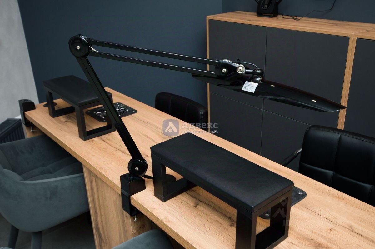 Помещение полностью оборудовано для оказания услуг маникюра, педикюра, коррекции бровей и макияжа — все рабочие места укомплектованы профессиональной техникой и современной мебелью под заказ.