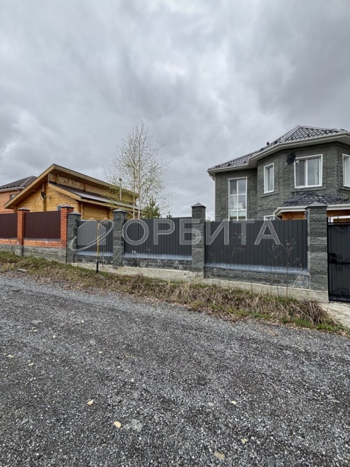 Дом расположен на участке площадью 13,5 сот. Участок засеян газоном, по периметру высажены ели, огорожен капитальным забором с лицевой стороны с электрическими воротами, боковые стороны и тыльная сторона из профнастила. На участок, оборудован заезд, имеются места на три автомобиля.
