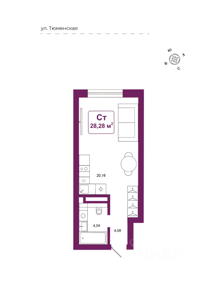 Общая площадь28,28 м2