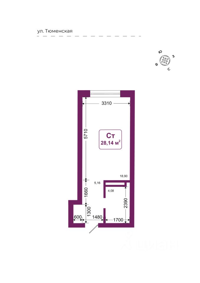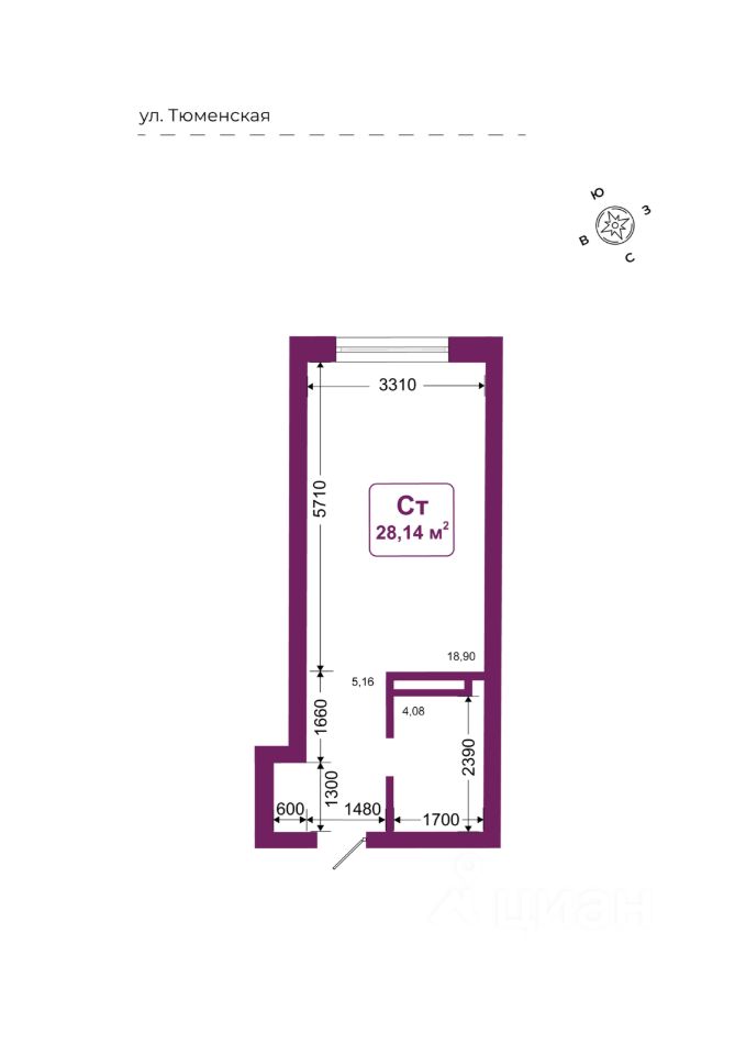 Общая площадь28,14 м2