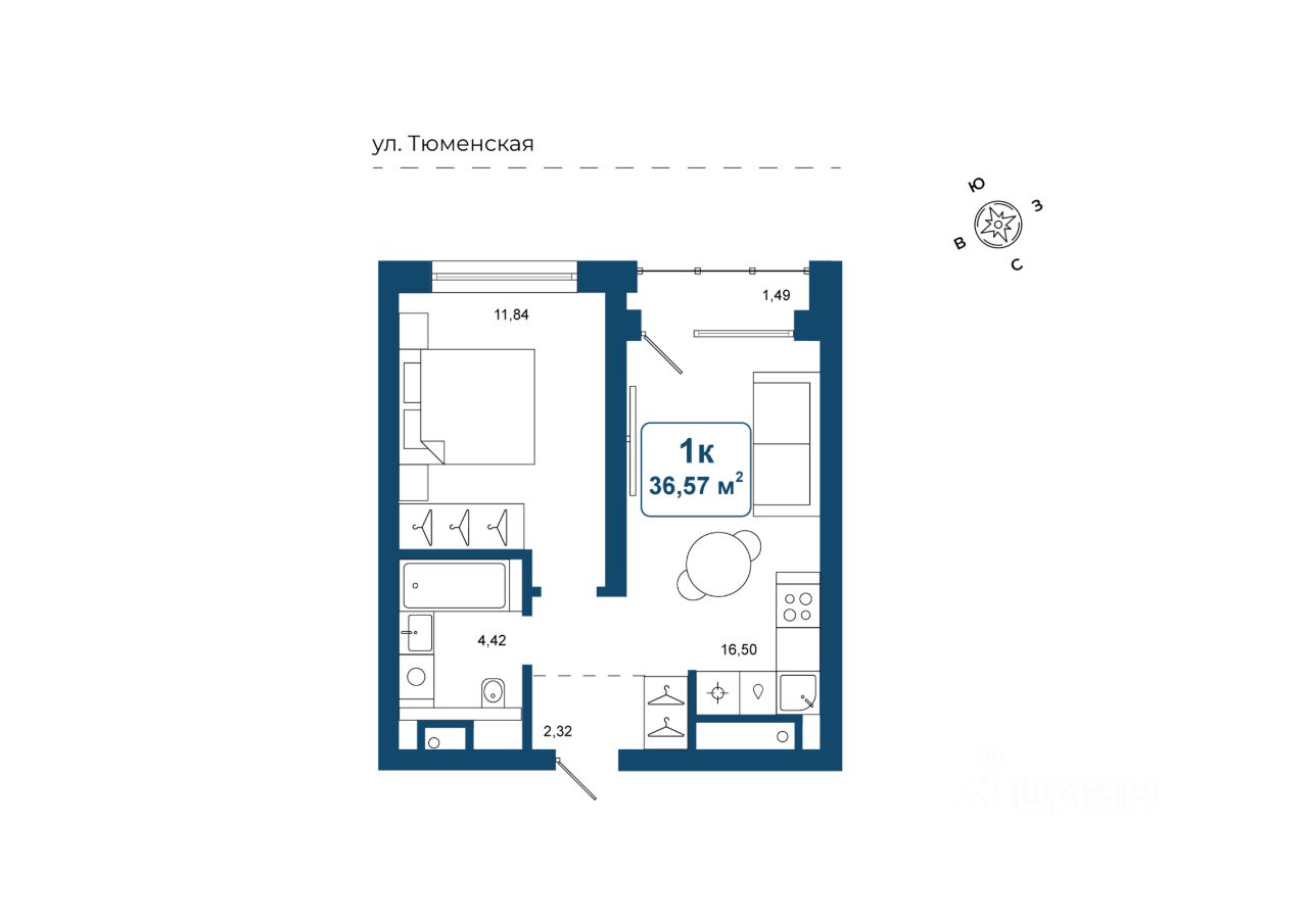 Общая площадь36,57 м2