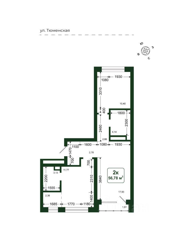 Общая площадь56,78 м2