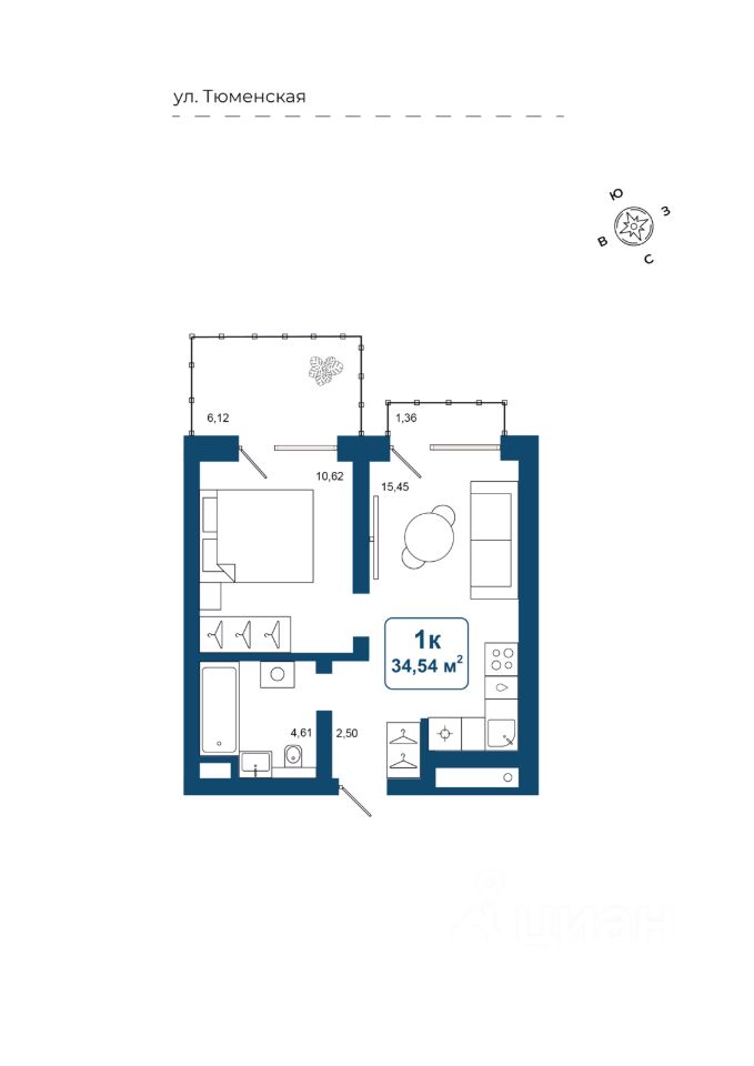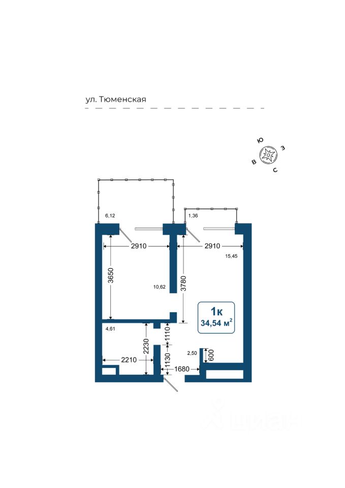 Общая площадь34,54 м2