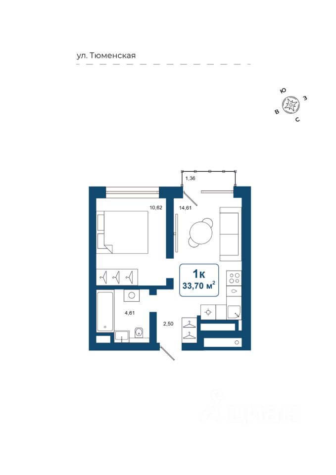 Общая площадь33,7 м2