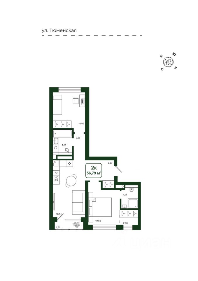 Общая площадь56,79 м2