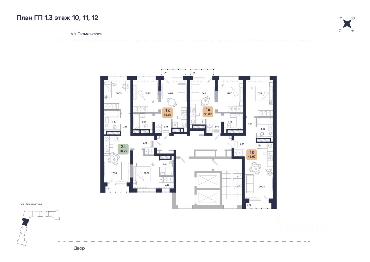 Общая площадь45,07 м2