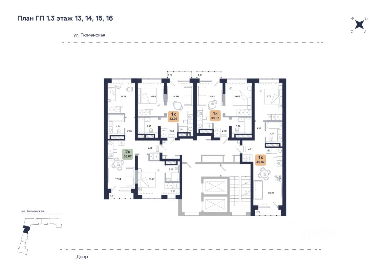 Общая площадь33,07 м2