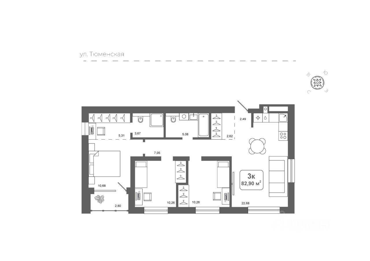 Общая площадь82,9 м2