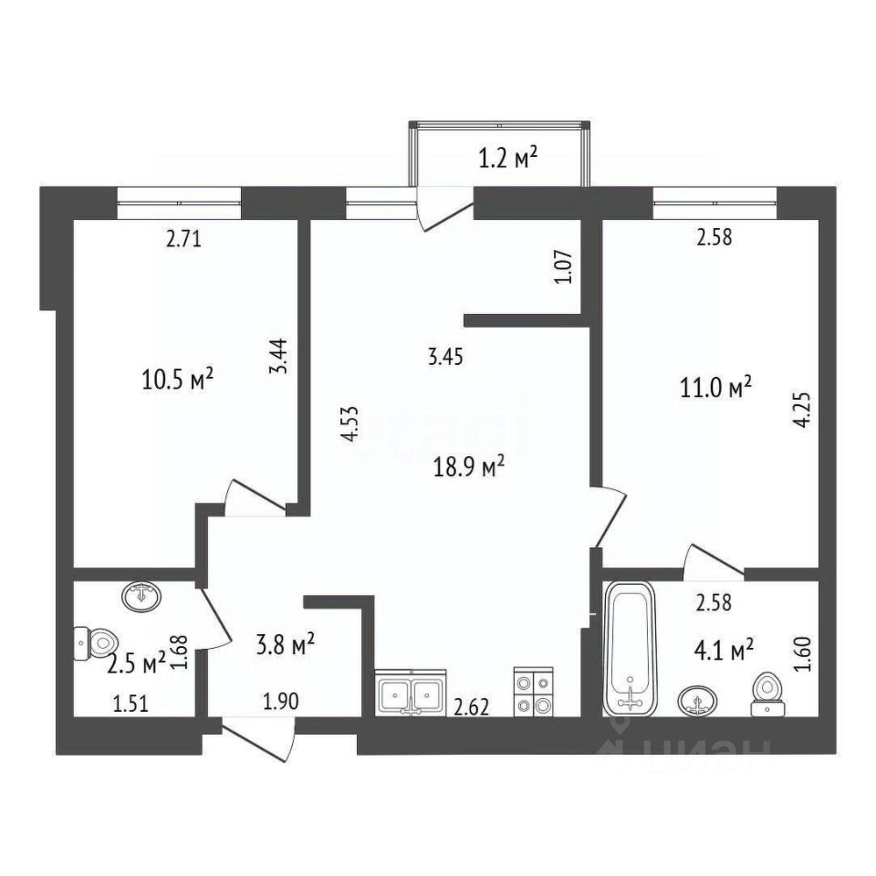 Продается двухкомнатная квартира, кухня-гостиная, две изолированные комнаты, 2 санузла. Дом монолитно-каркасного исполнения.