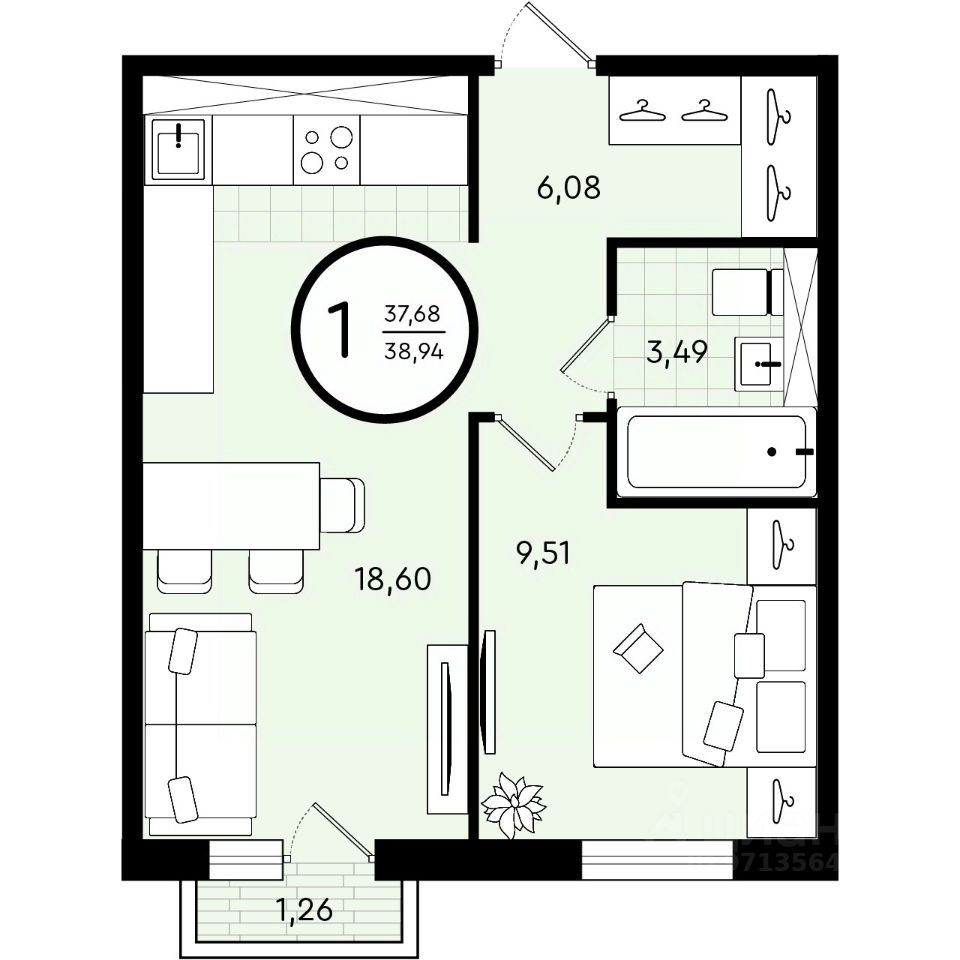 продам 1-к, Александра Звягина, 35 624 500 ₽