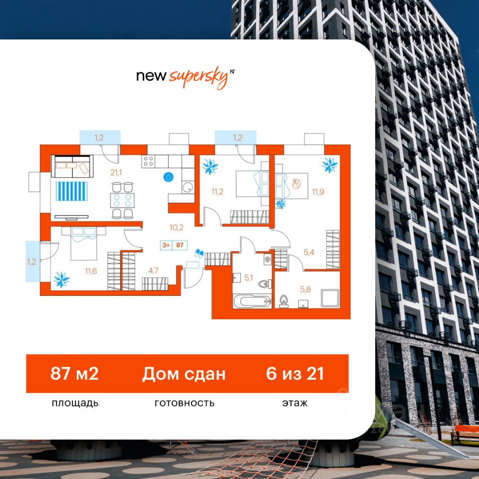 Продаётся 3-комнатная квартира в сданном доме (Ветеранов Труда, 36к1), срок сдачи: II-кв. 2025, общей площадью 90.6 кв.м., на 6 этаже. Новый жилой комплекс от Специализированного застройщика ''Суперский'' расположен в Ленинском округе Тюмени на ул. Ветеранов труда.