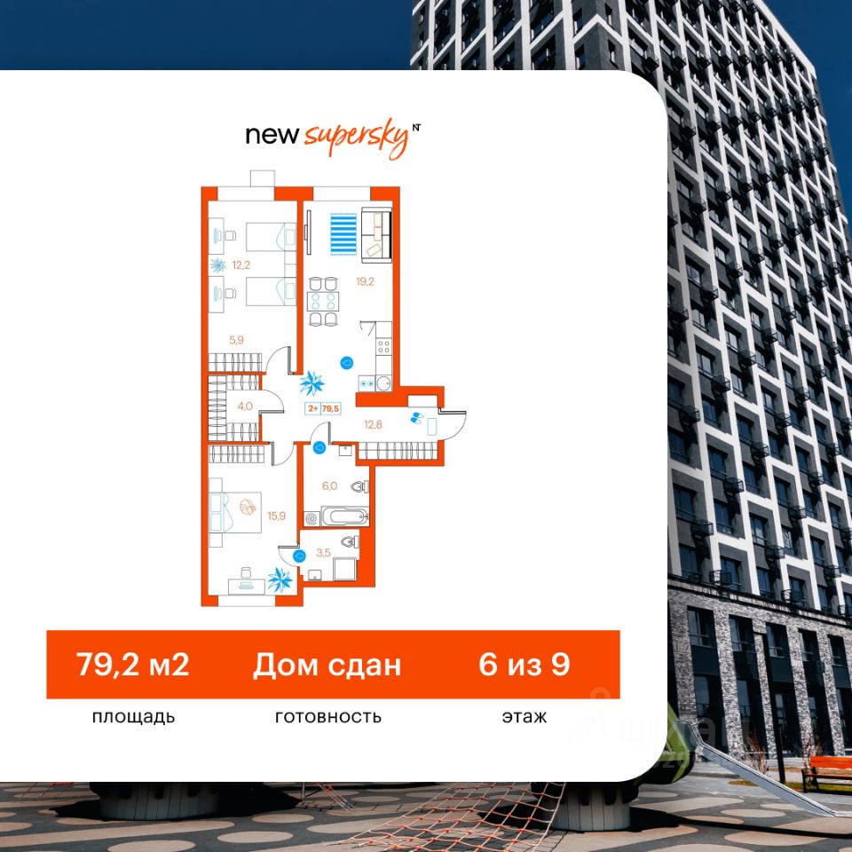 Продаётся 2-комнатная квартира в сданном доме (Ветеранов Труда, 36к1), срок сдачи: II-кв. 2025, общей площадью 79.5 кв.м., на 6 этаже. Новый жилой комплекс от Специализированного застройщика ''Суперский'' расположен в Ленинском округе Тюмени на ул. Ветеранов труда.